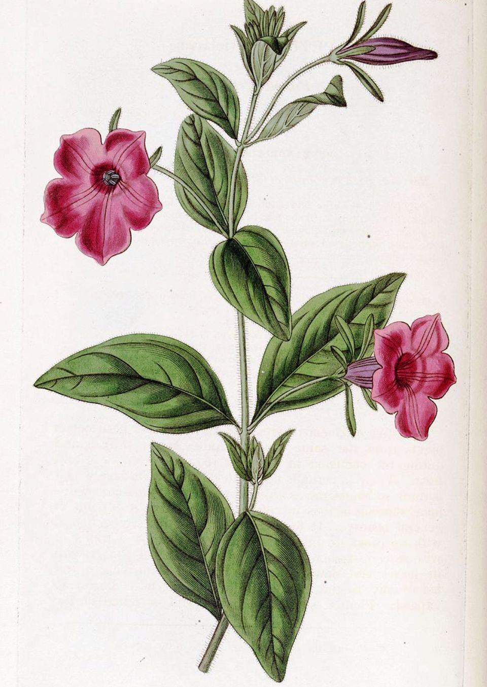 Dentro de las características con las que cuentan las petunias se puede mencionar que, su nombre es un término originario de la lengua aborigen denominado tupí-guaraní petum o betum, mismo nombre que se asociaba a los sembradíos de tabaco Nicotiana tabacum, esto por las similitudes que ambas plantas mantenían en apariencia morfológica.