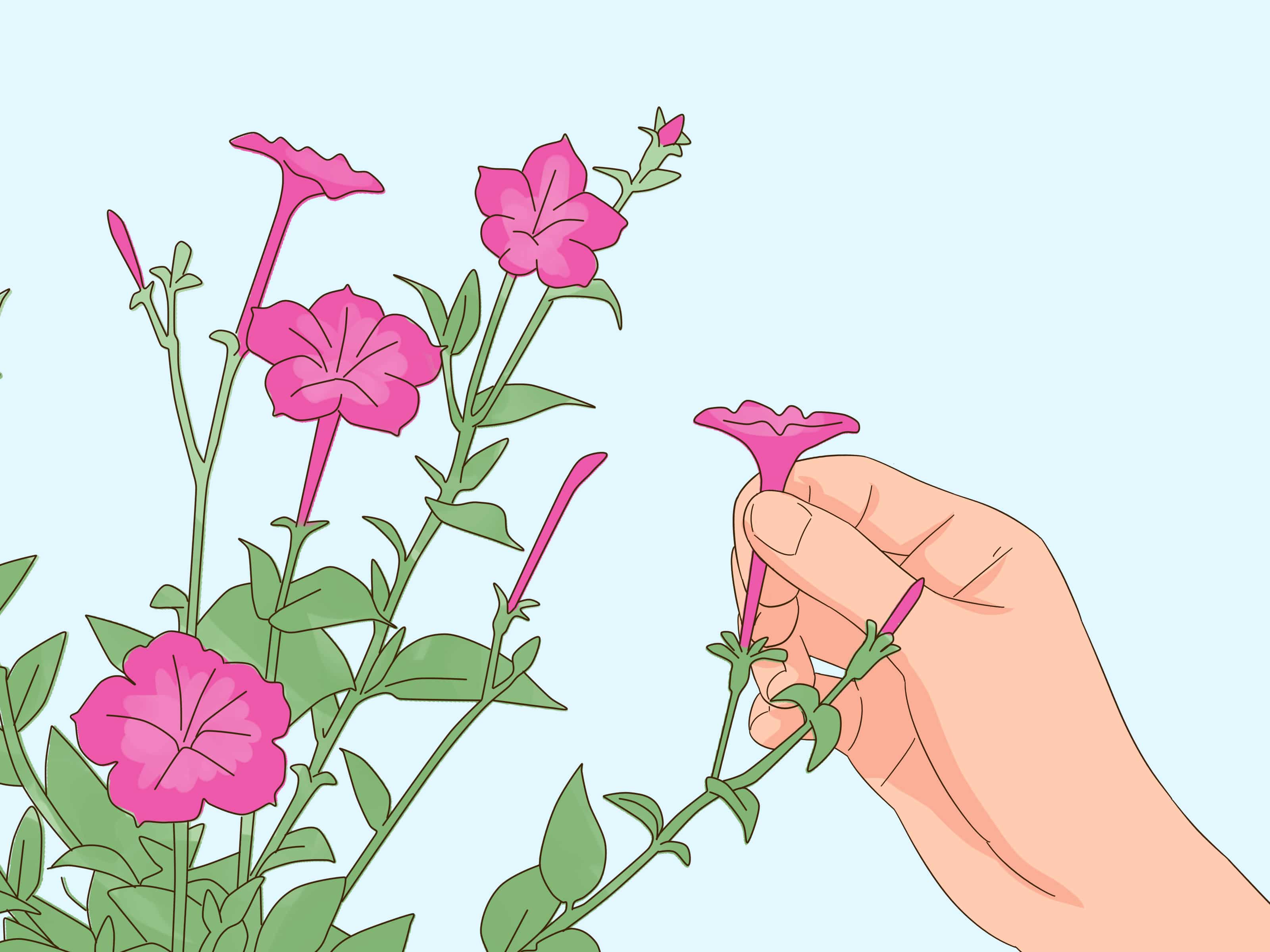 Con la poda de las petunias, bloquea la producción de semillas, originando que se desarrollen muchas más flores. Existen varias maneras de eliminar las hojas que ya no sirvan, entre ellas un método rudimentario que es arrancarlas con las manos.
