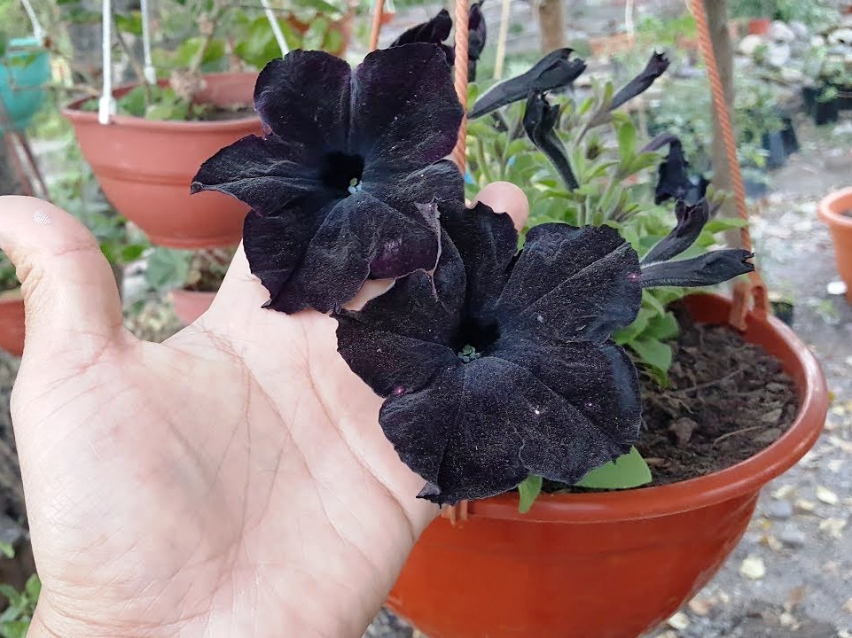 Las petunias negras, son el producto de un proceso de hibridación, un método relativamente nuevo, que ha ido poco a poco ganando importancia, gracias a lo hermoso de la exposición de sus flores y el tono de color en que se va tornando, lo que origina un gran impacto a nivel visual.