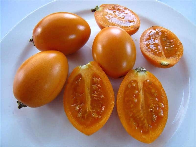 Es otra de las diversidades que nos ofrece la naturaleza en el tomate de árbol naranja igualmente llamado ámbar se caracteriza por ser más dulce de las otras dos mencionadas antes, de las variedades de tomate de árbol. Tienen la particularidad de ser pequeños de la misma forma que los otros es de suave y rico sabor. Como mencionamos tiene una piel dorada muy atractiva.