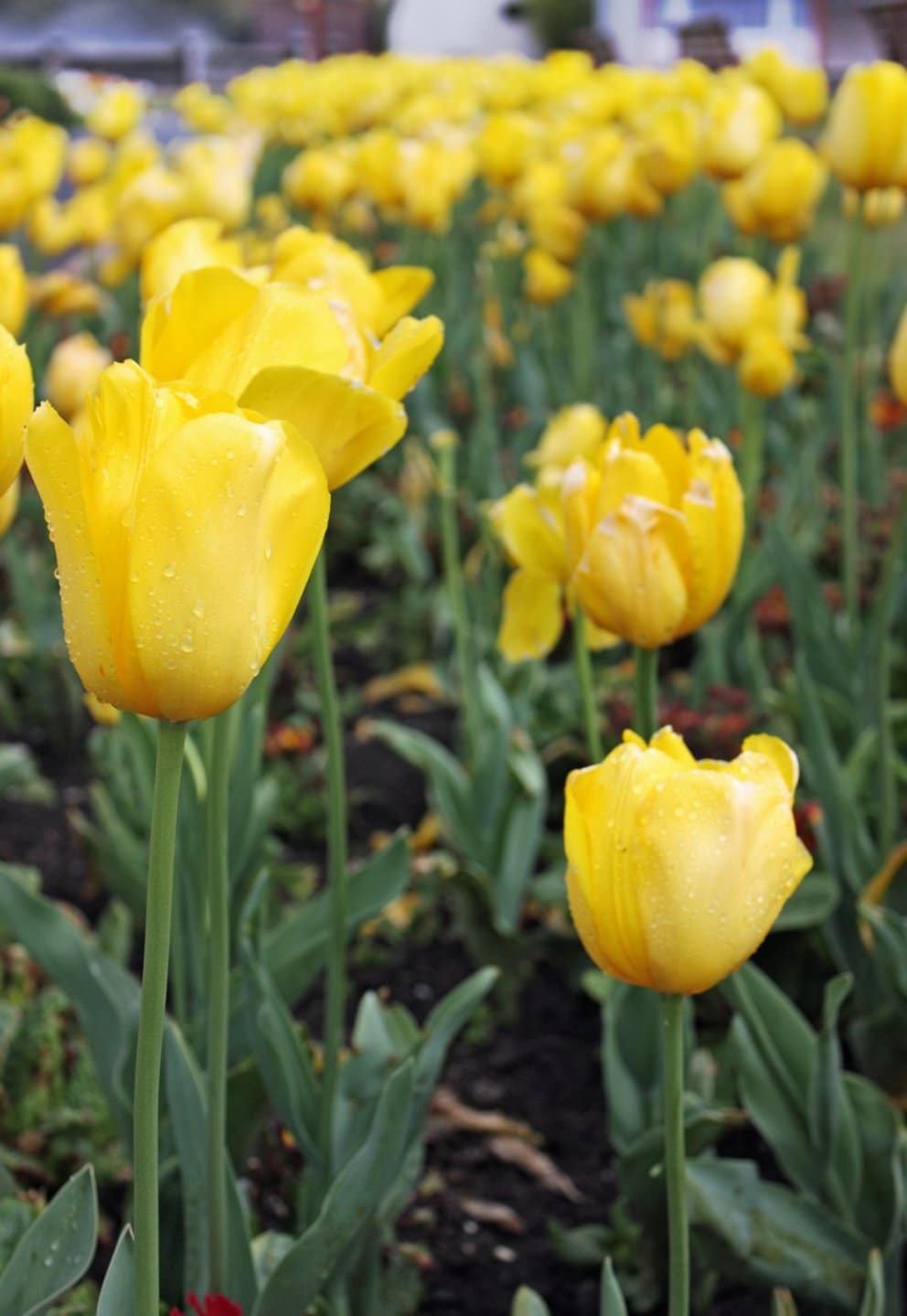 En el caso de los bulbos de tulipán que son plantados en patios o jardines, necesitan una mayor observación, esto con la finalidad de evitar que sobrepasen su límite de agua. Cuando las plantas están sembradas cerca de otras plantas, al momento de ser regadas con abundante agua, esto puede perjudicar las plantas de tulipán cercanas.