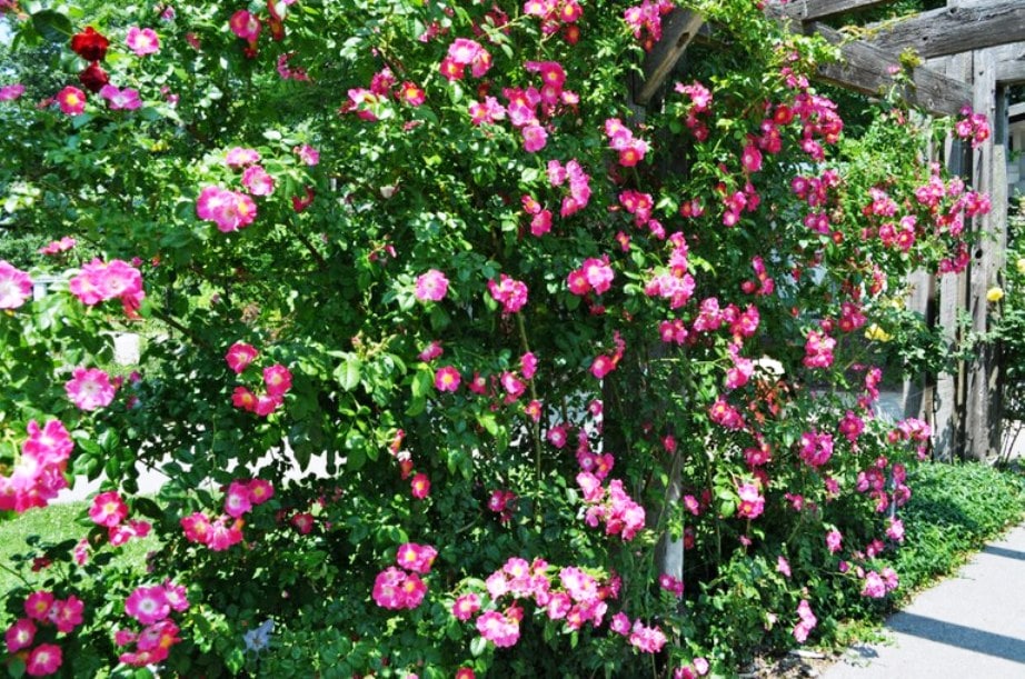 Este tipo de rosas trepadoras son las precisas para adornar pérgola, gracias a la flexibilidad de sus tallos, que les permiten tomar una mejor orientación sobre las distintas estructuras. Por lo general, las rosas trepadoras para cercos son rosas de color rosado, las cuales florecen de manera abundante pero se dan solo una vez durante la época de la primavera.