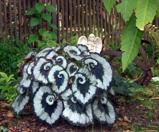 Esta variedad es las más apreciada por el hermoso colorido de sus hojas. Conforman un gran grupo de híbridos de la begonia de hoja, originaria de los bosques de la India. Los especialistas no se ponen de acuerdo en el nombre que deben usar para clasificar a todos los ejemplares que conforman esta variedad.