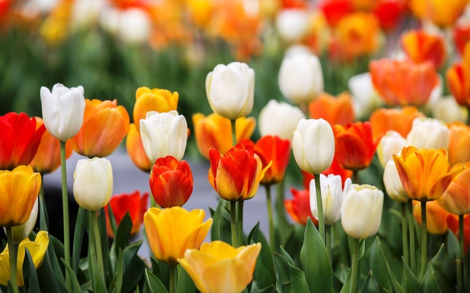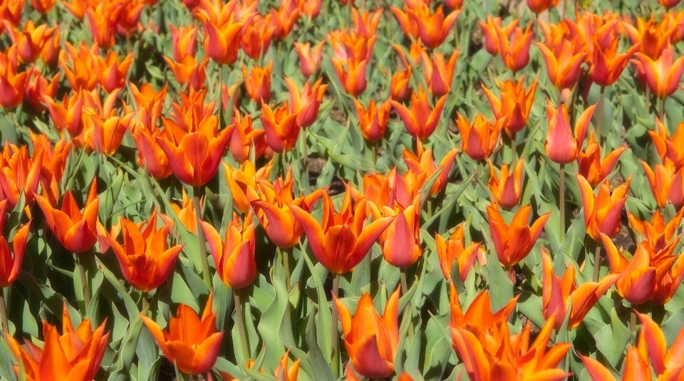 A pesar de esto, no sino en el mes de Abril, cuando los campos de tulipanes se tornan coloridos, permitiendo que los ojos de amantes y aficionados a esta flor, contemplen una gama de arcoíris en la tierra. Esta situación se extiende hasta mediados del mes de mayo, siendo ésta catalogada como la temporada de los tulipanes.