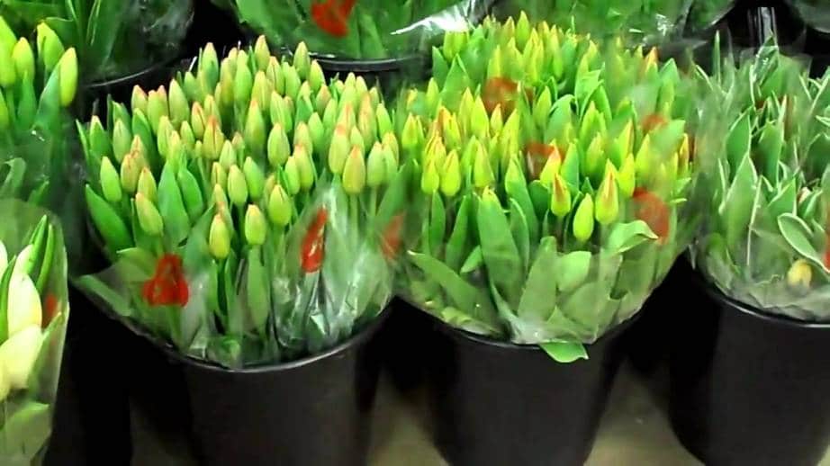 Deben moverse los bulbos de tulipán en el invernadero, una vez que se les haya proporcionado la cantidad de frío completo necesario, con el objeto de forzarlos. Se debe tomar en cuenta que mientras más extenso sea el tiempo de la siembra, esto le restara calidad a la flor que se esté por producir.