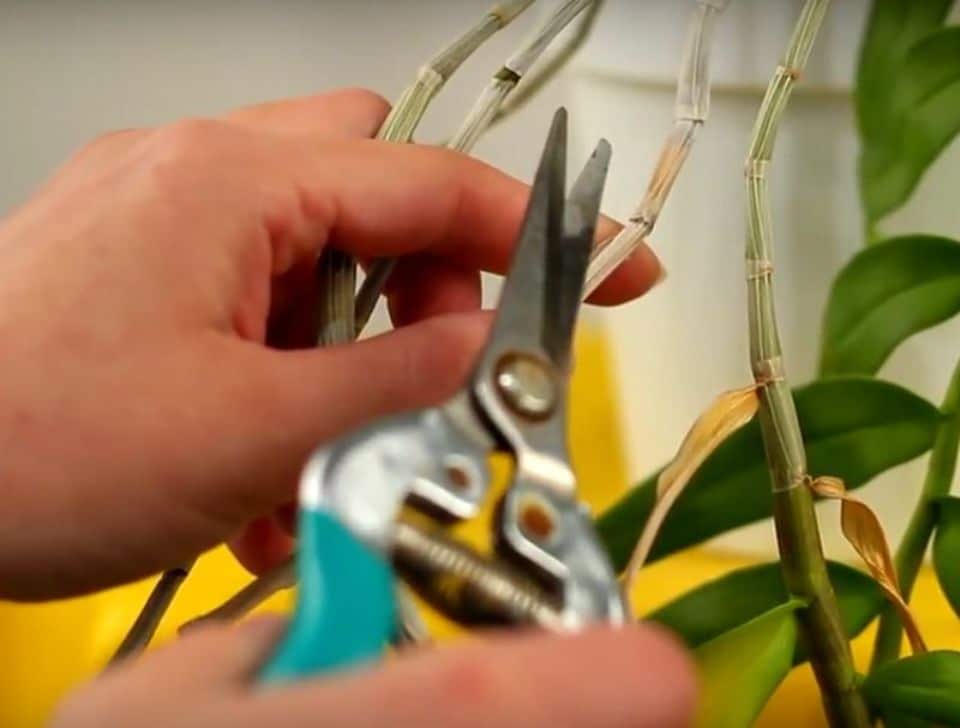 Un dato para tomar en consideración es que las raíces de las orquídeas pueden ser podadas solo cuando se encuentren en reposo. Los cortes son solo para eliminar las partes dañadas de la planta, nunca se debe cortar una parte sana de la planta pues la puede perjudicar.