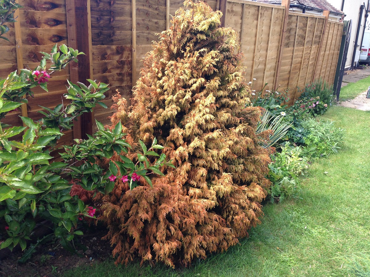 Ante este padecimiento ocurre que el hongo de suelo llamado Phytopthora, actúa desde el interior de la planta causando que se seque desde adentro hacia afuera. Mayormente se ven los ataques en coníferas, tuyas y cipreses. Ocurriendo en ellos una infección radicular que presenta síntoma de desecación del follaje, que se convierte en marrón.