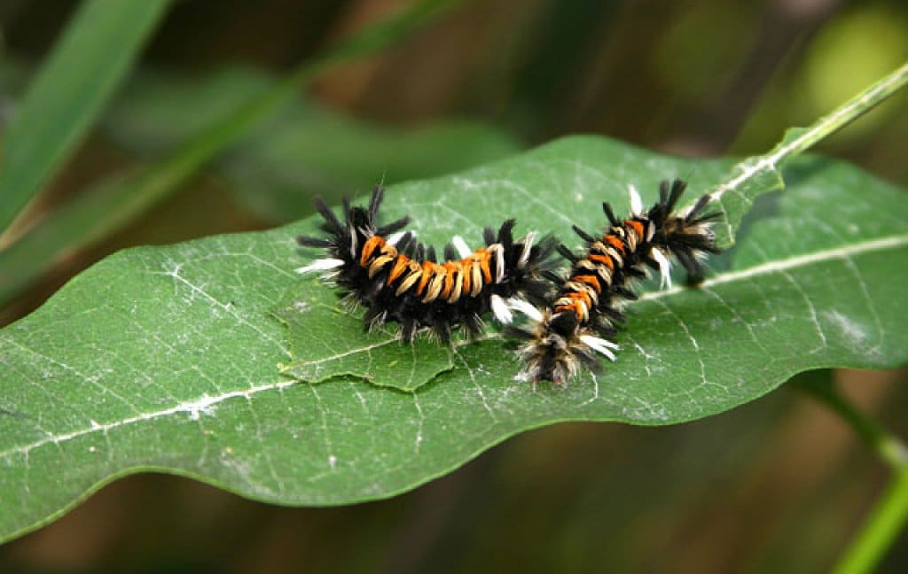 En cuanto a las larvas u orugas hay variedades de ellas que merodean para dar las hojas, entre estas podemos mencionar los plúsidos o la rosquilla verde. Una de las particularidades que pueden notarse es que fácilmente pueden ser tomada con las manos por ser tan grande, para acabar con ellas se usa insecticida.
